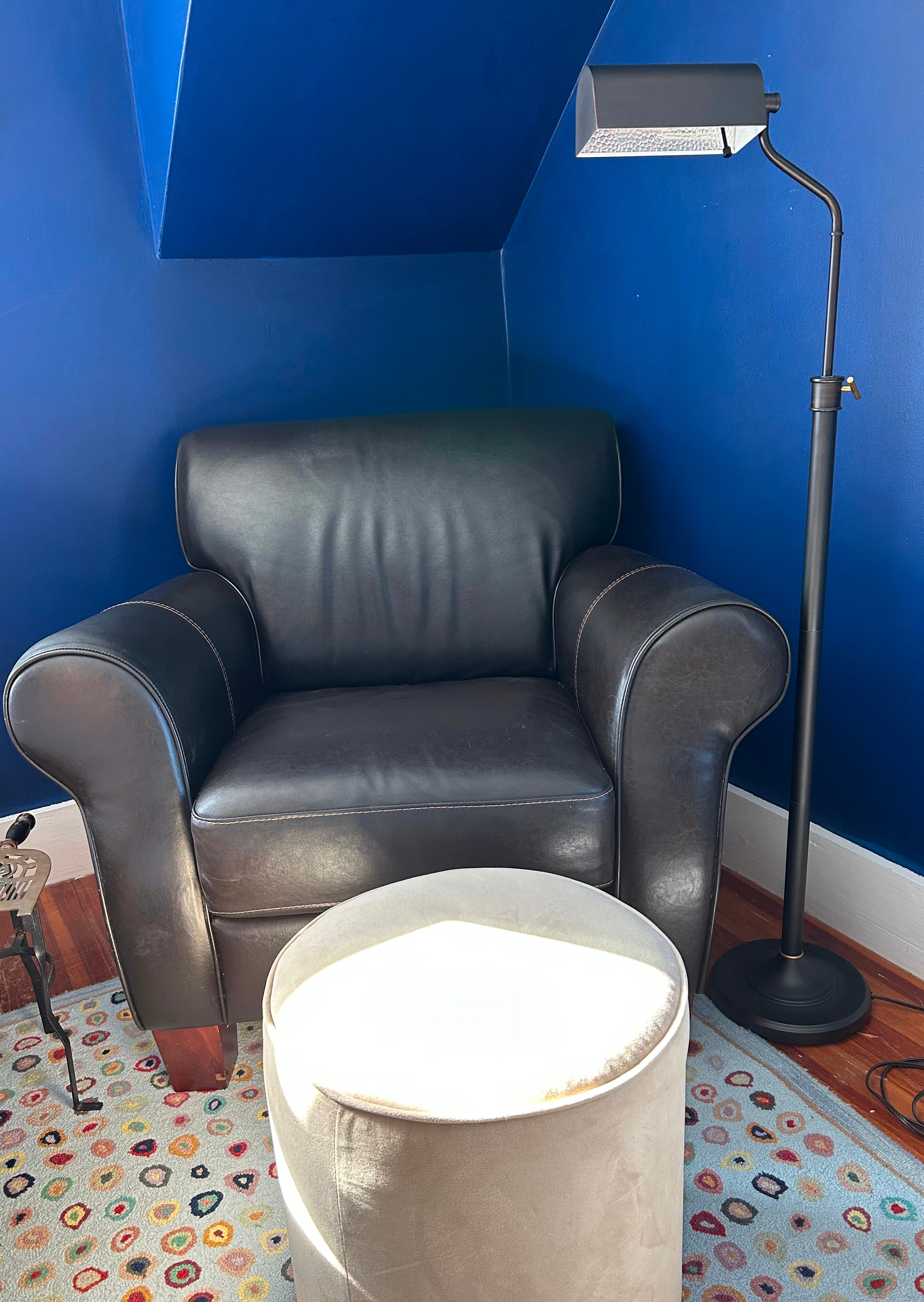 However, the part of me that wants to learn to relax, to explore living in the present more than I do, was curious. Can I sit that long? In a bedroom upstairs is a large leather chair with an ottoman to support stretched-out legs. This, I told myself, will be my meditation spot. I grabbed the blanket folded at the end of the bed and draped it over myself, already pondering the possibilities of adopting this as a napping location, too. JKZ advocates sitting on the floor or in a straight-back chair with a “dignified posture.” Embracing his loving kindness philosophy, I gave myself points simply for not slouching.